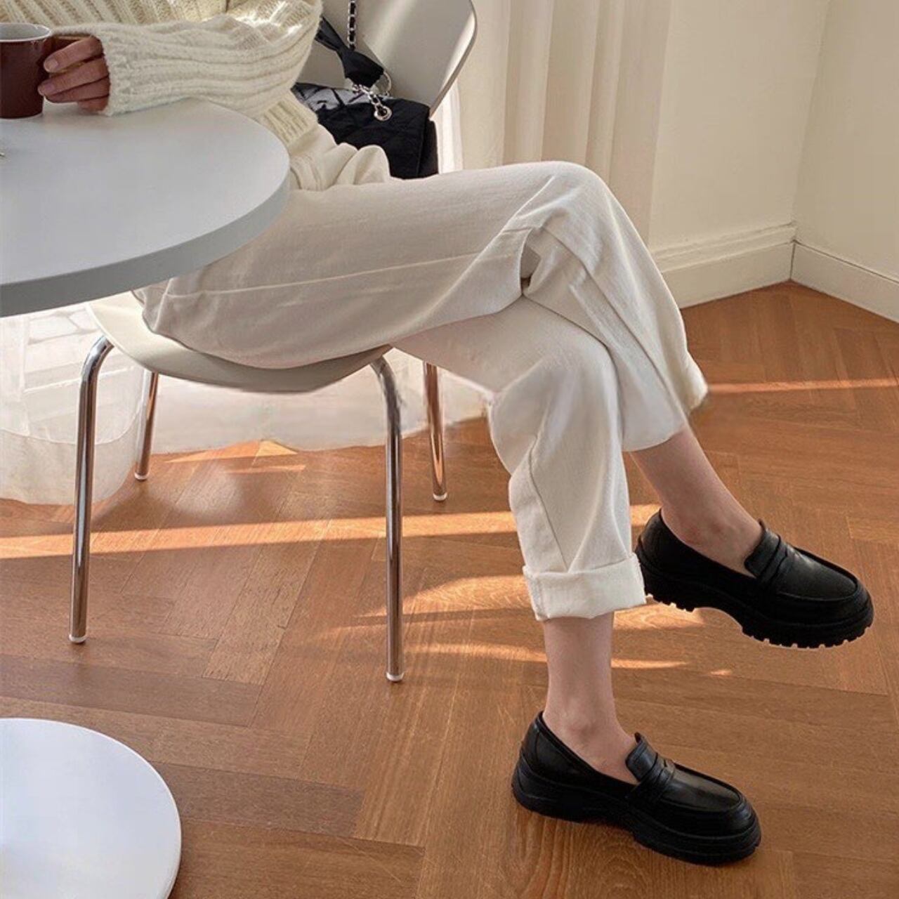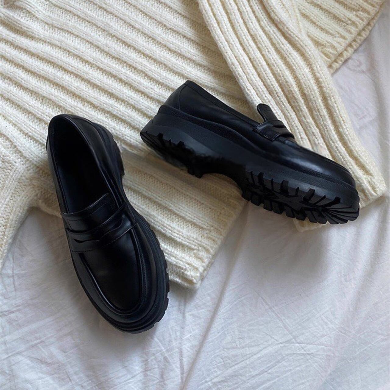 Thick-soled Round-toe Loafers 1color 0012