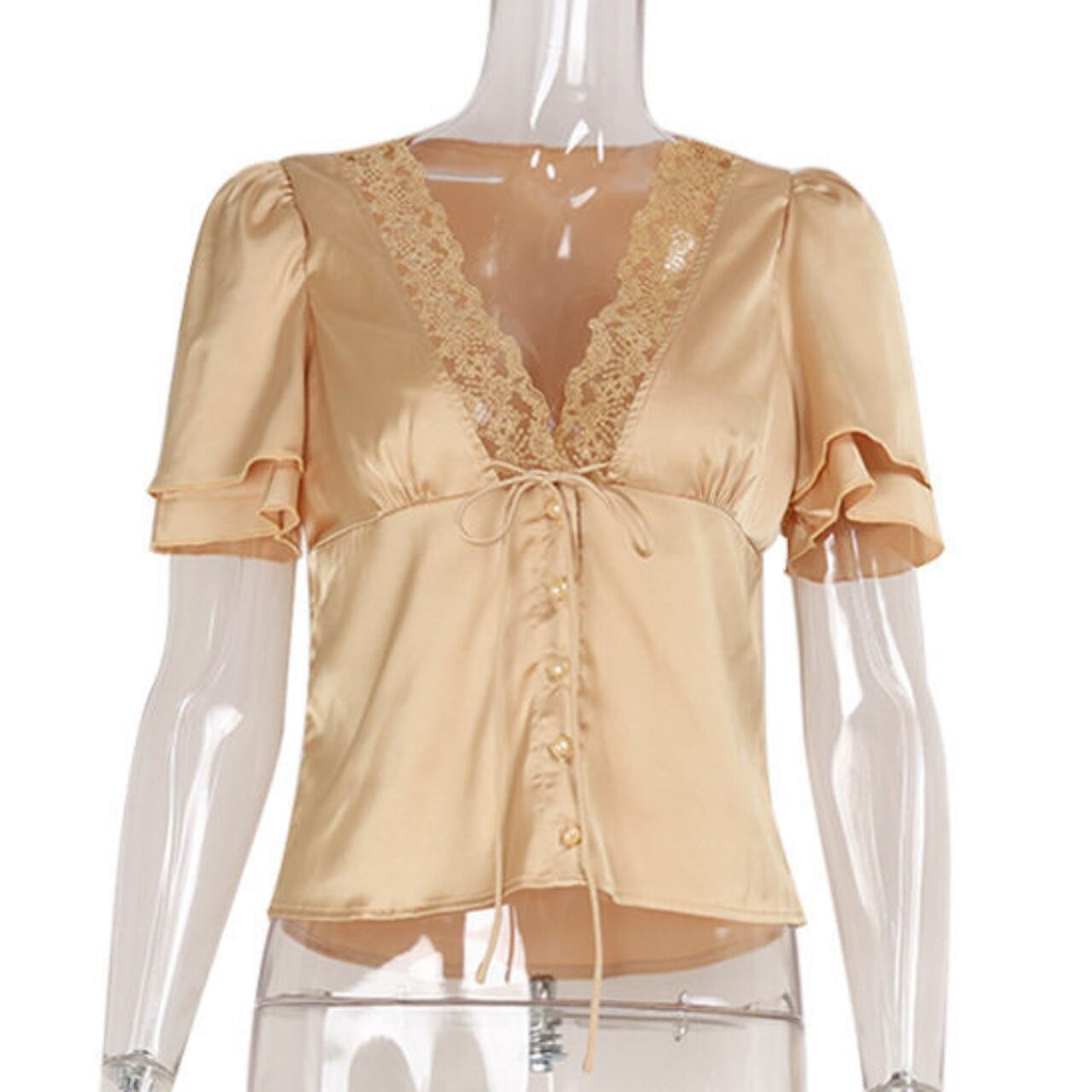 Sheer Lace Tie Blouse 5color 5color 00051
